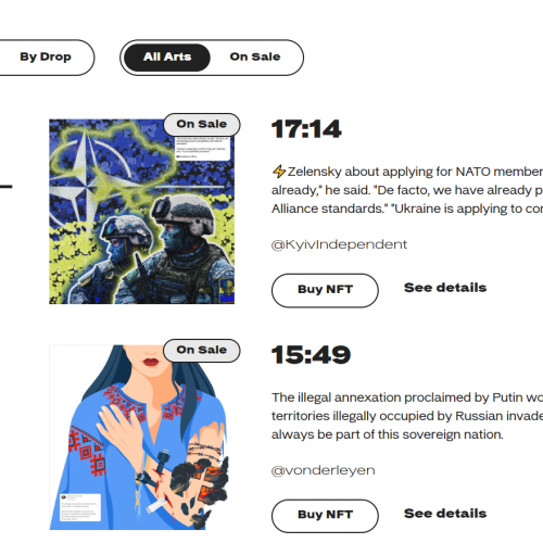 Deze NFT's zijn gemaakt om "de geschiedenis van de huidige gebeurtenissen in Oekraïne te herdenken, de waarheid (eeuwig) te bewaren en donaties in te zamelen voor humanitaire hulp."